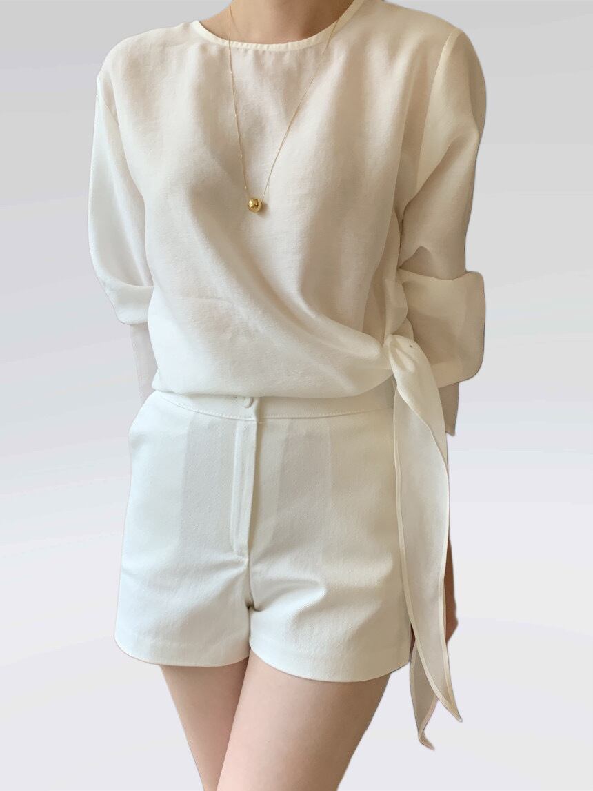 シアー素材なので軽やかで綺麗めに着用できる1着です。