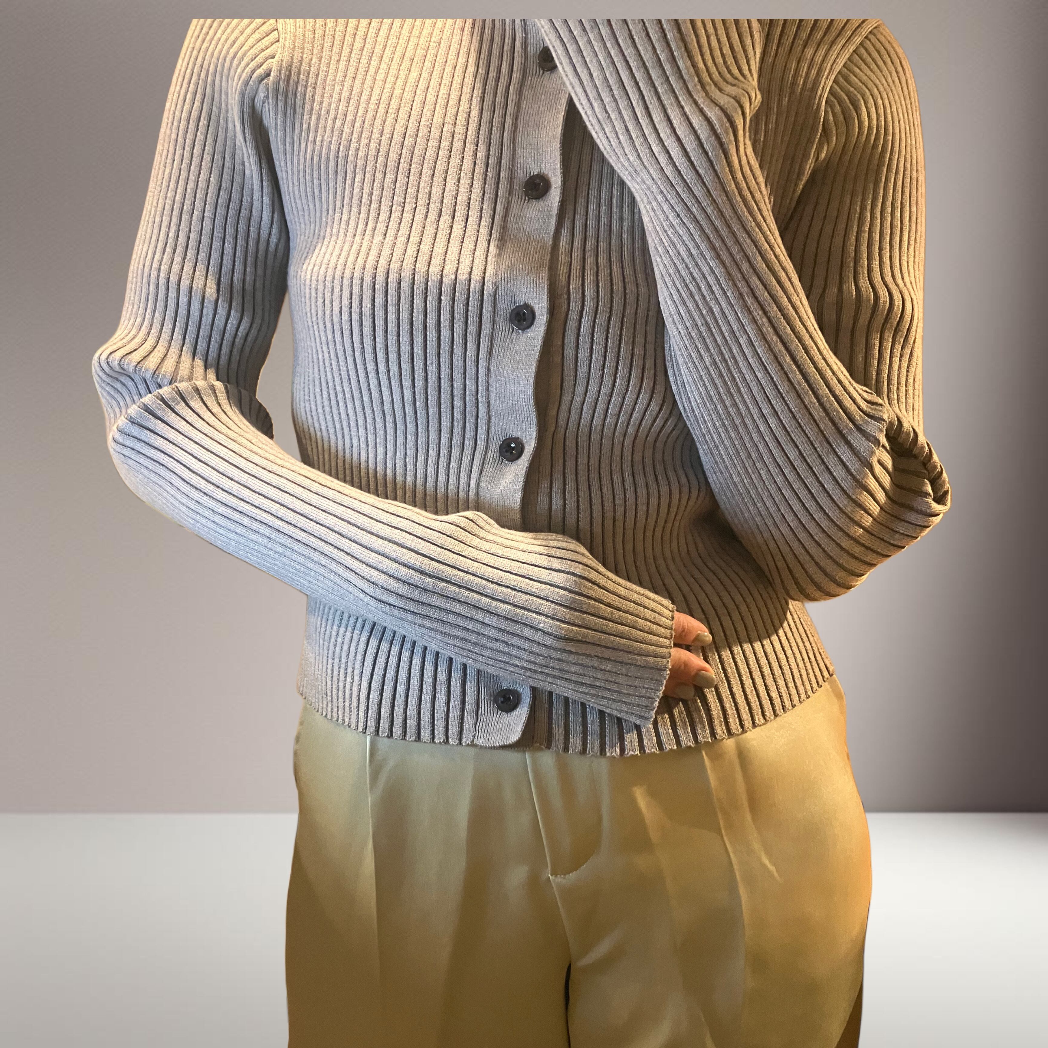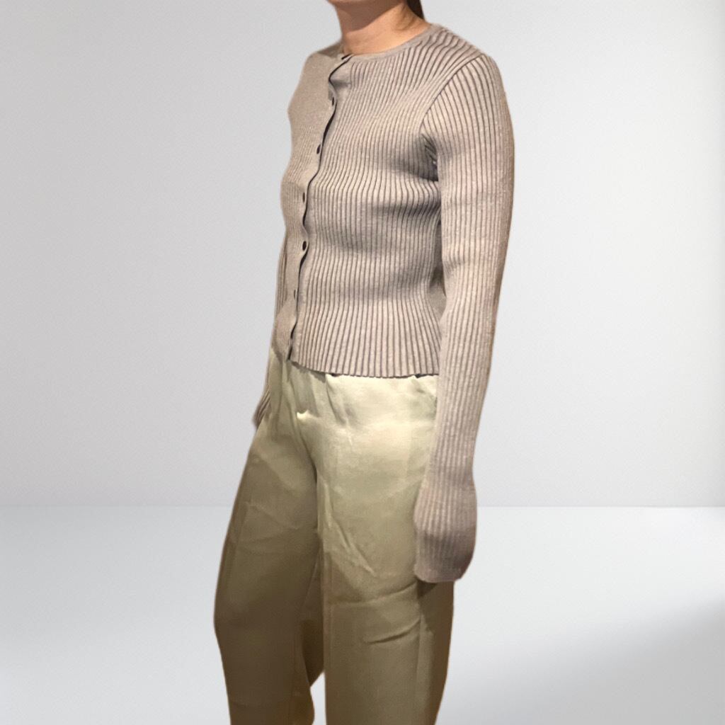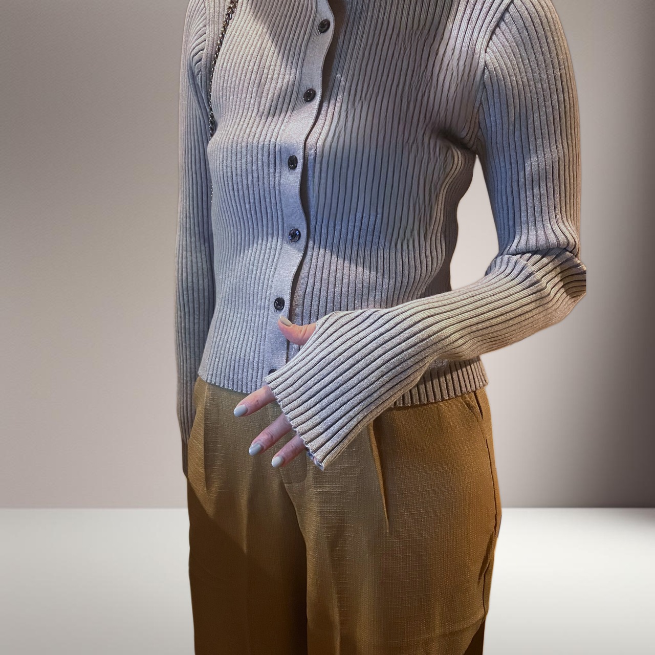ソフトなテクスチャーと柔軟性のあるリブ編みが快適な着心地を提供し、体のラインに優しくとフィットします。