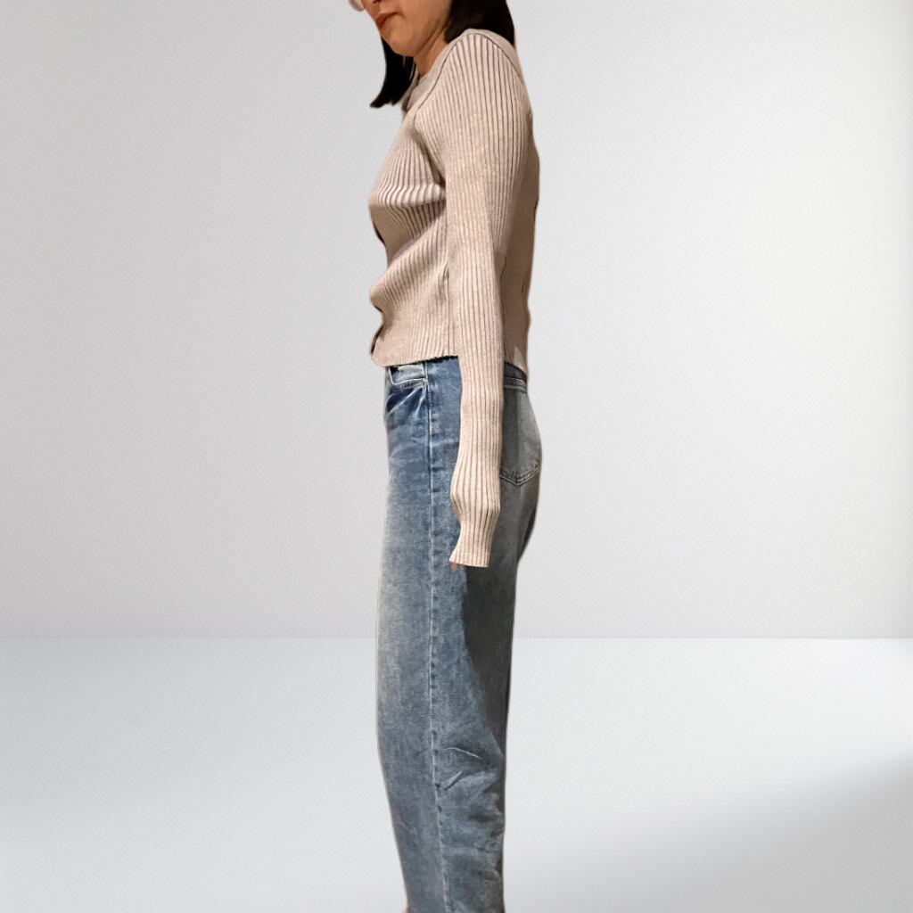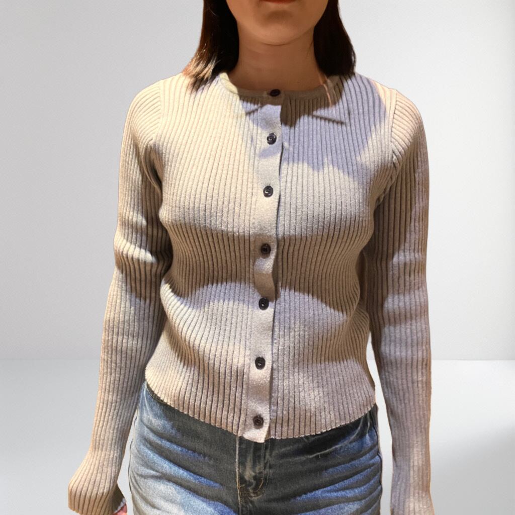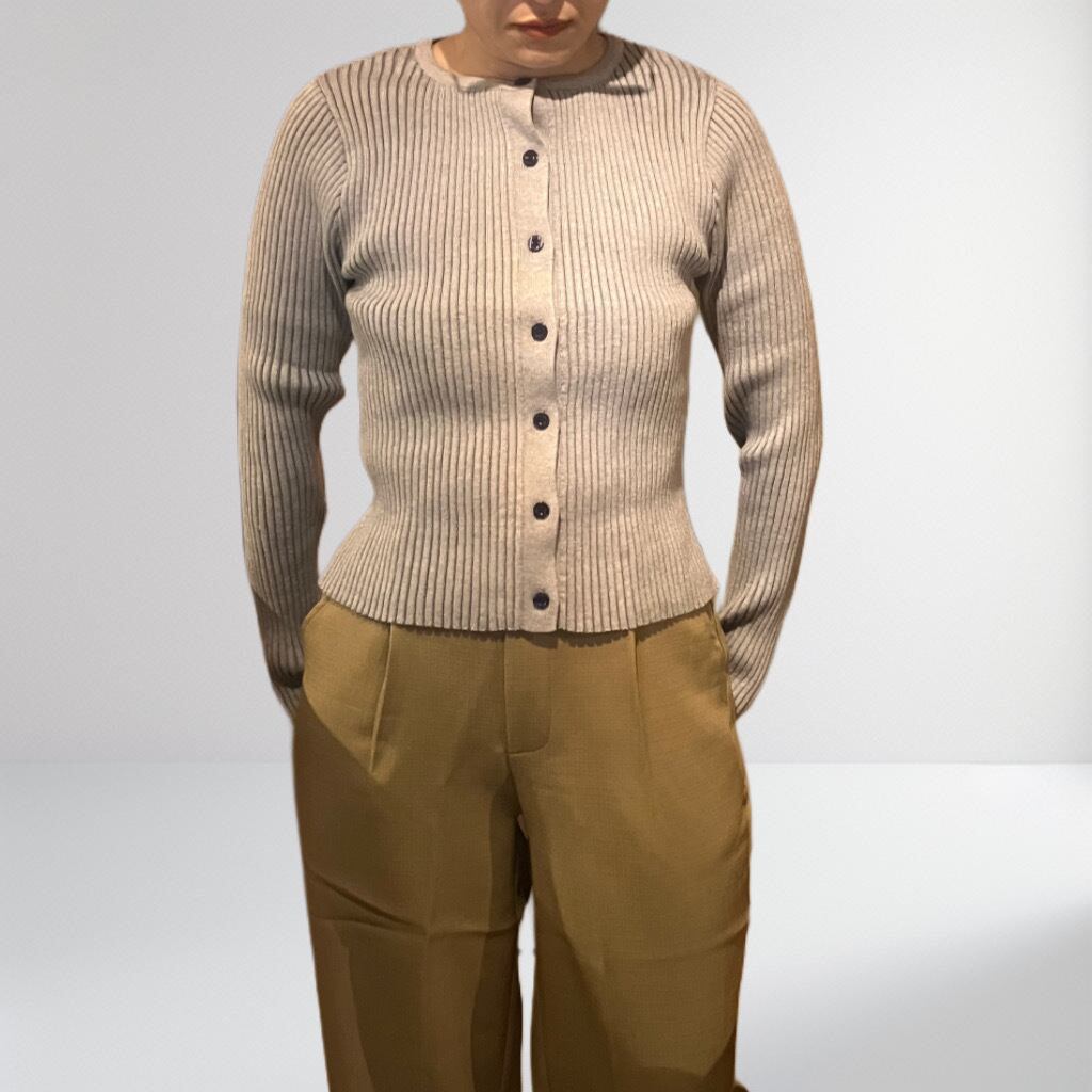 ソフトなテクスチャーと柔軟性のあるリブ編みが快適な着心地を提供し、体のラインに優しくとフィットします。