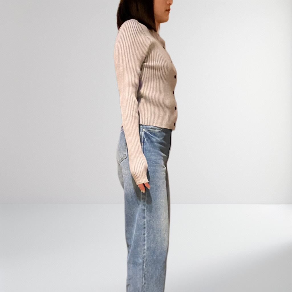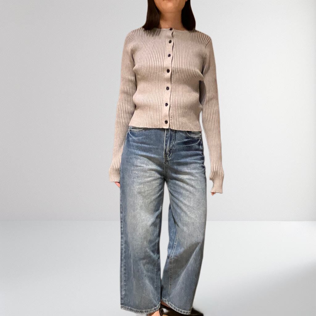 繊細なボタンクロージャーがエレガントなアクセントを加え、カジュアルからフォーマルまで幅広いシーンで活躍します。