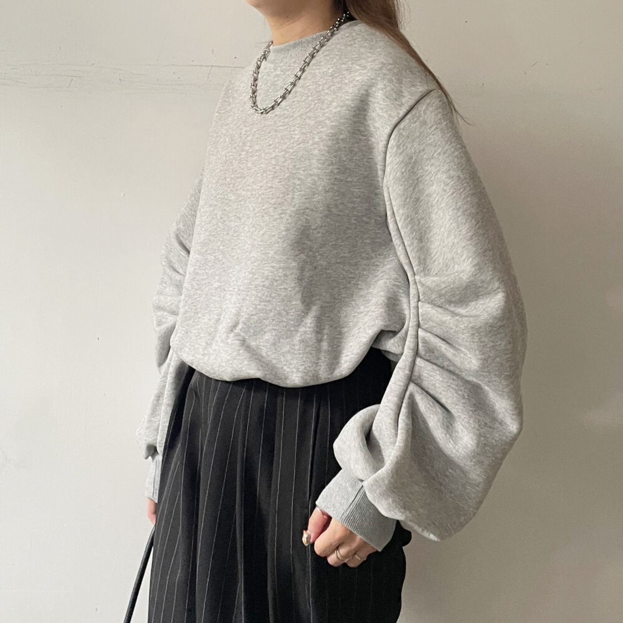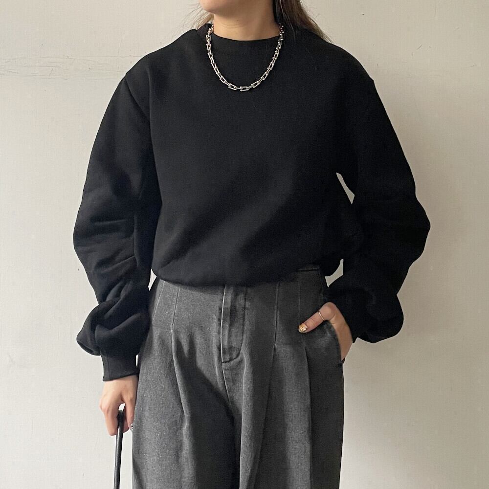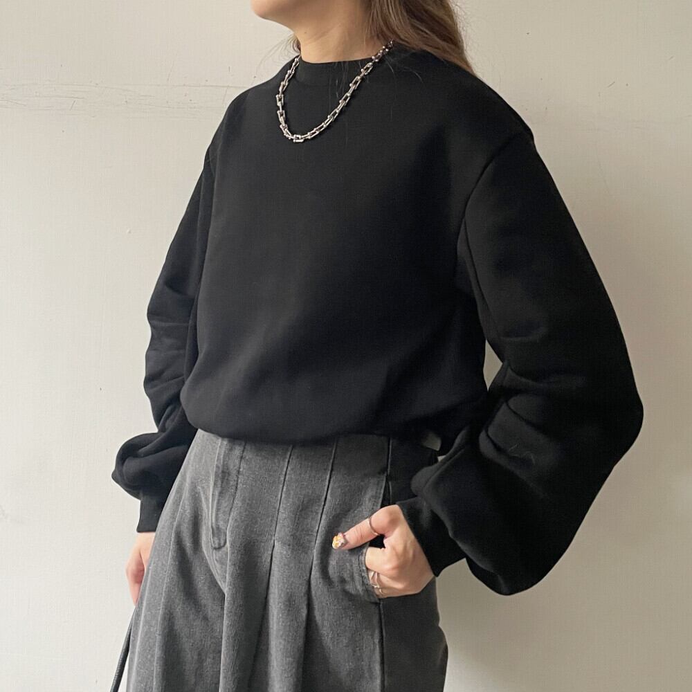 ボリューム感のあるスリーブが印象的な裏起毛プルオーバー