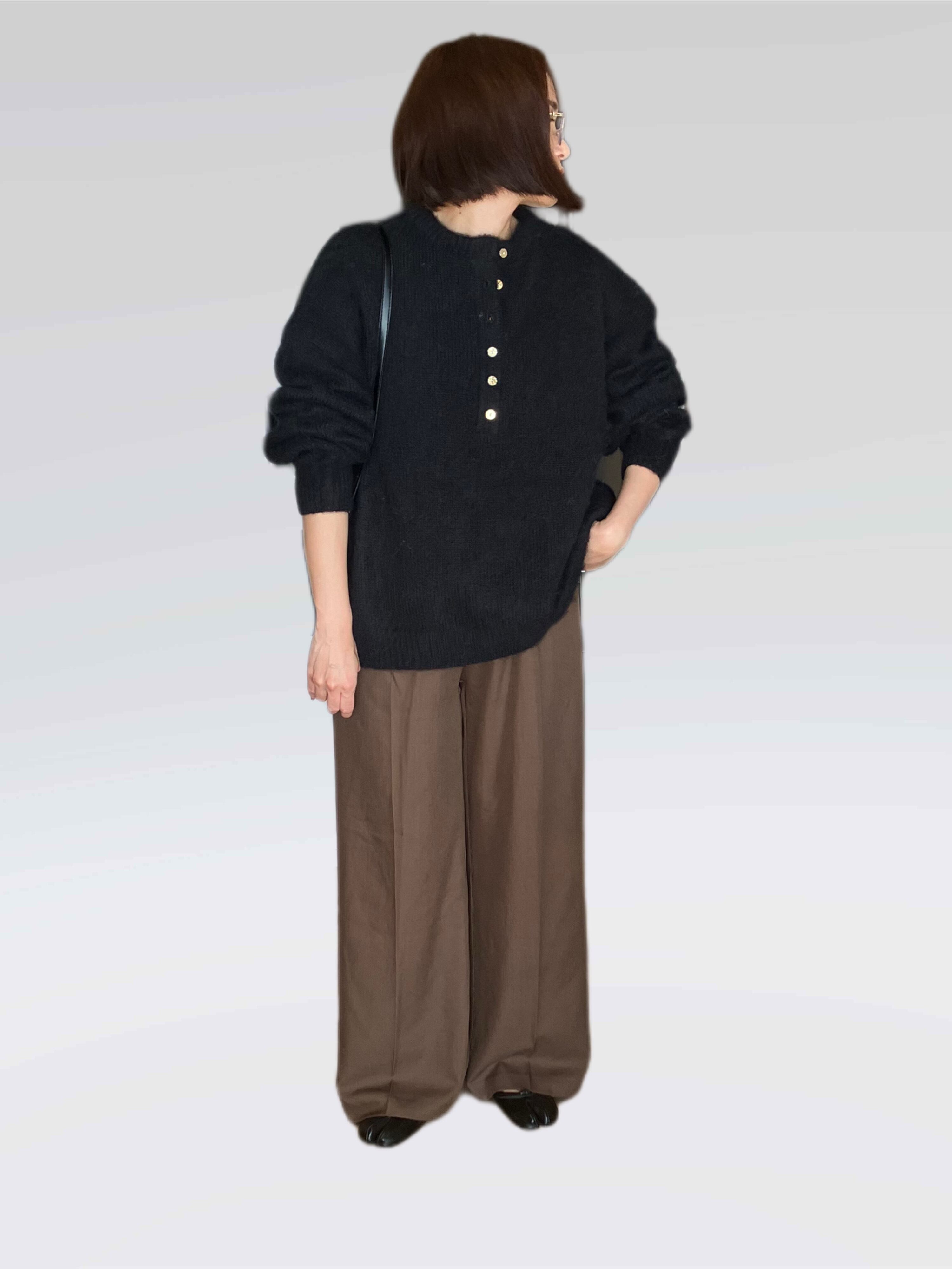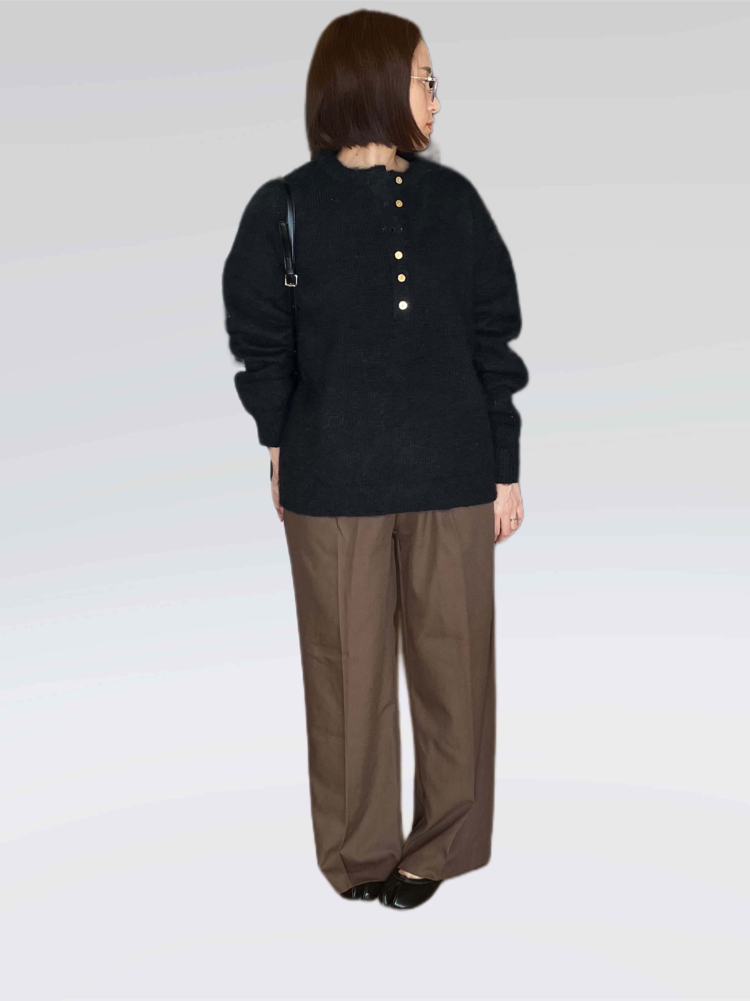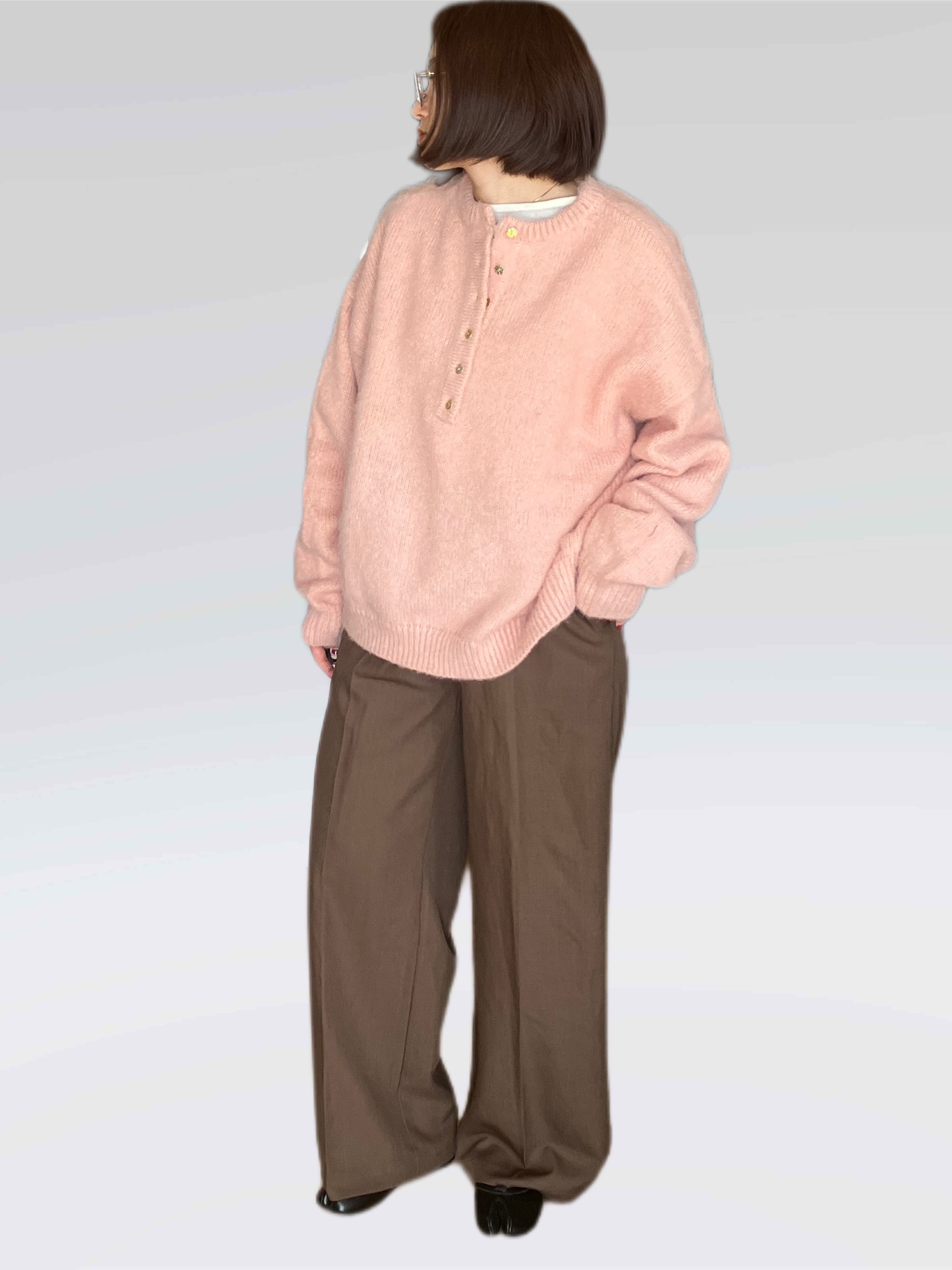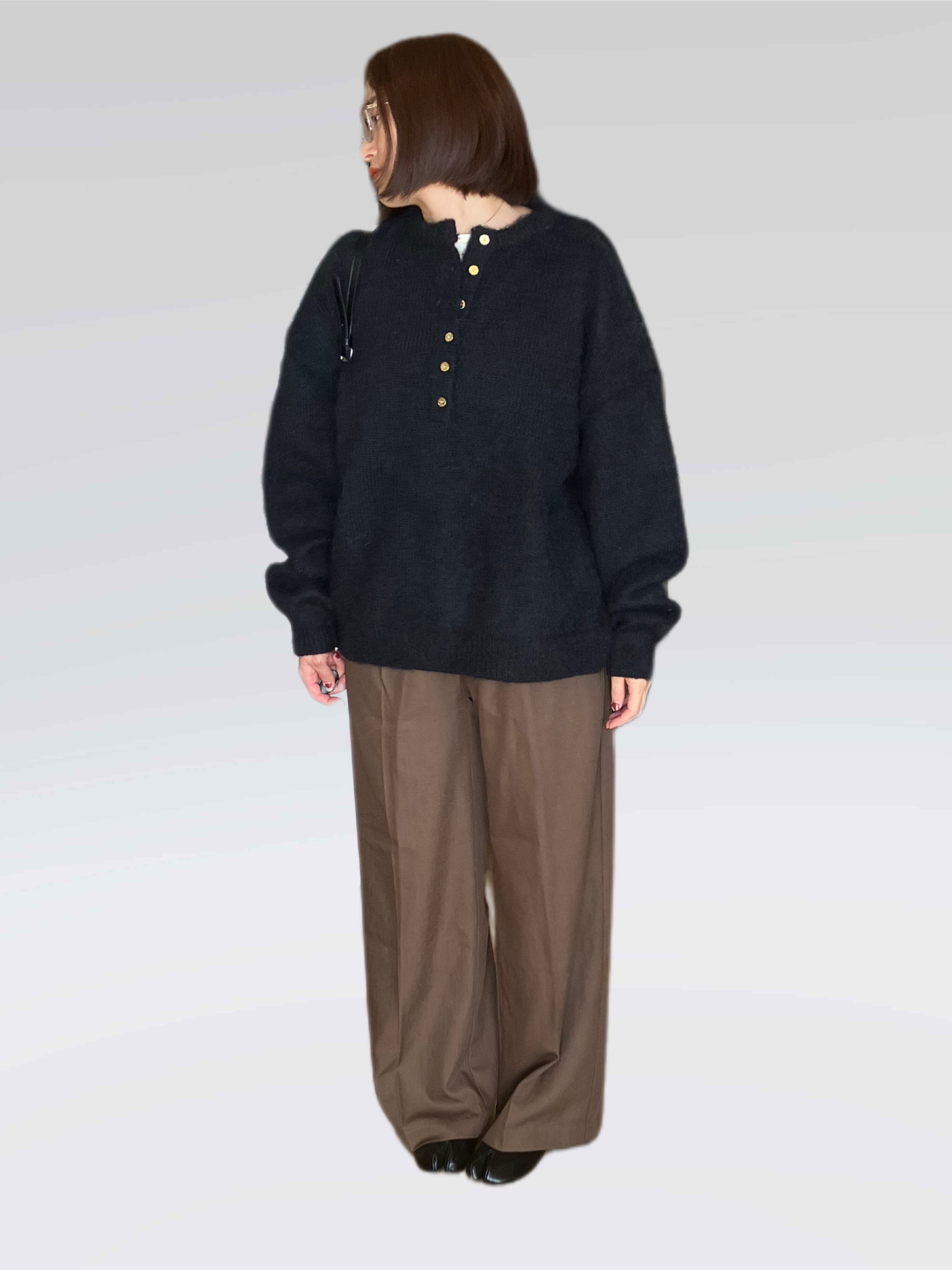 【即納】Wool-Touch Knit Henley Neck Pullover