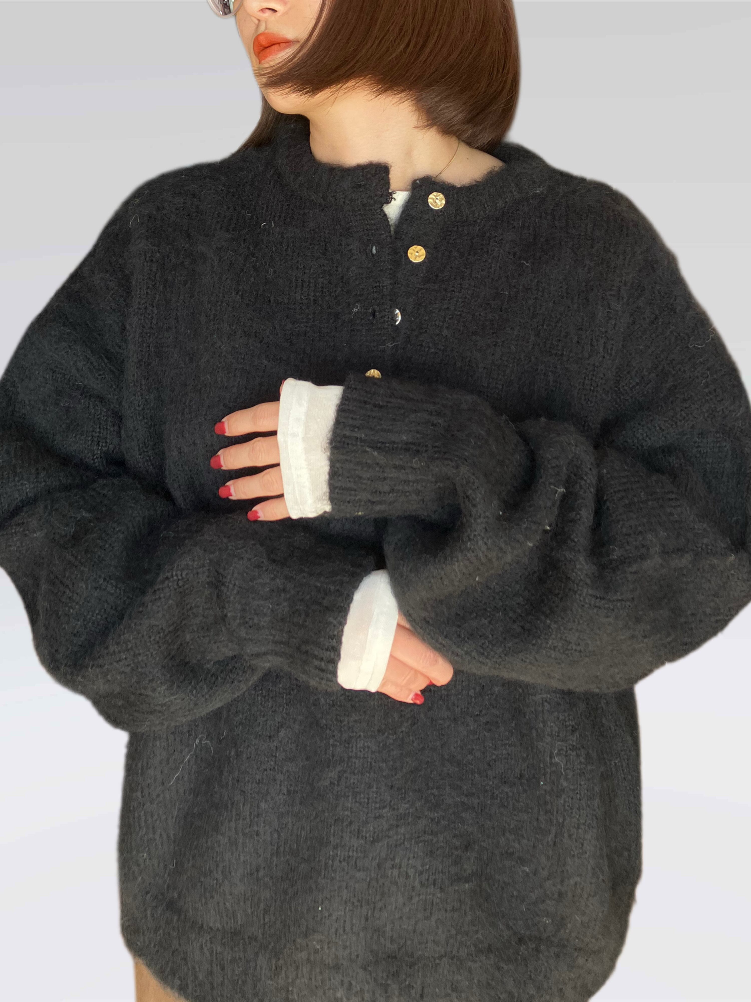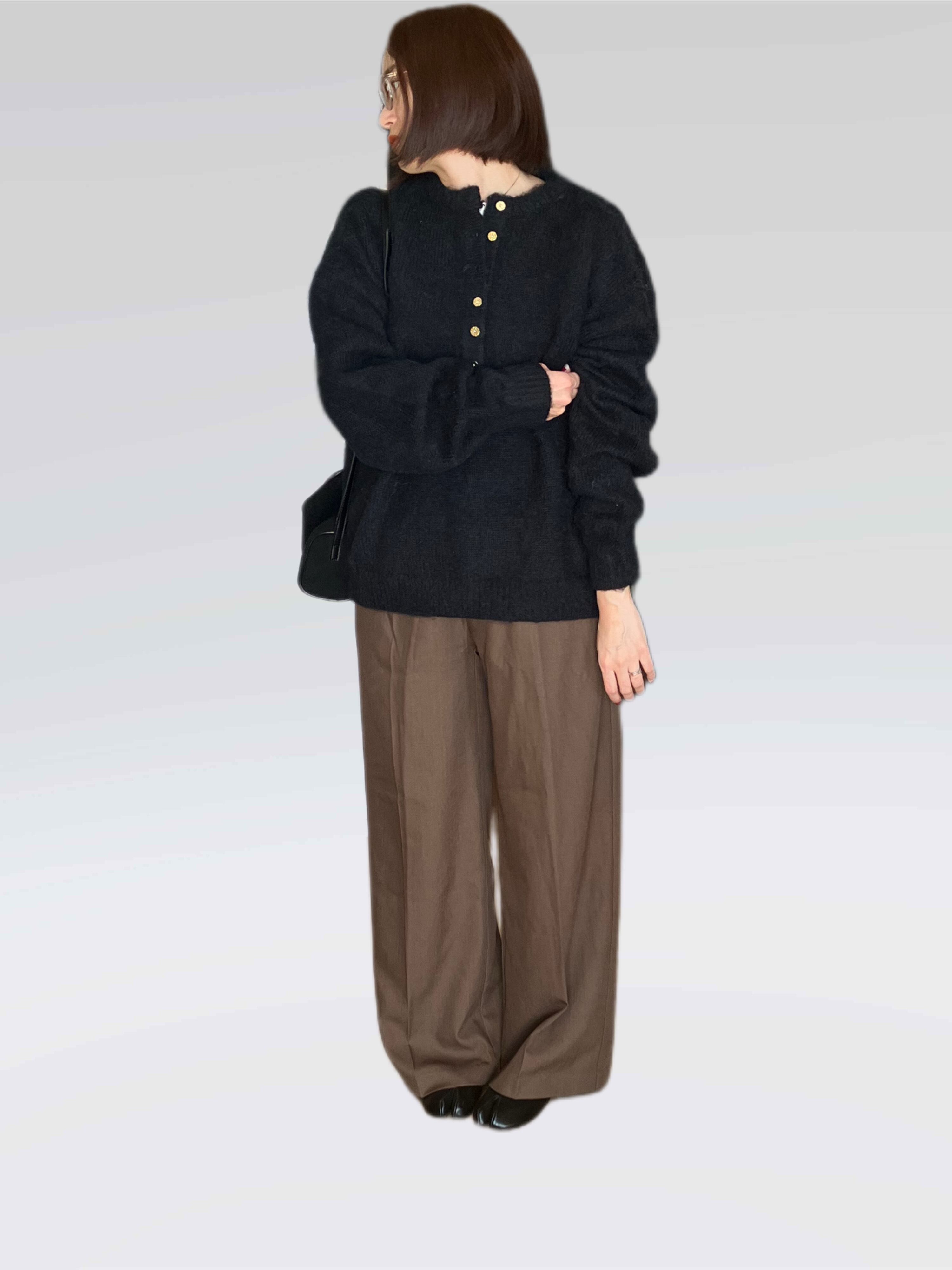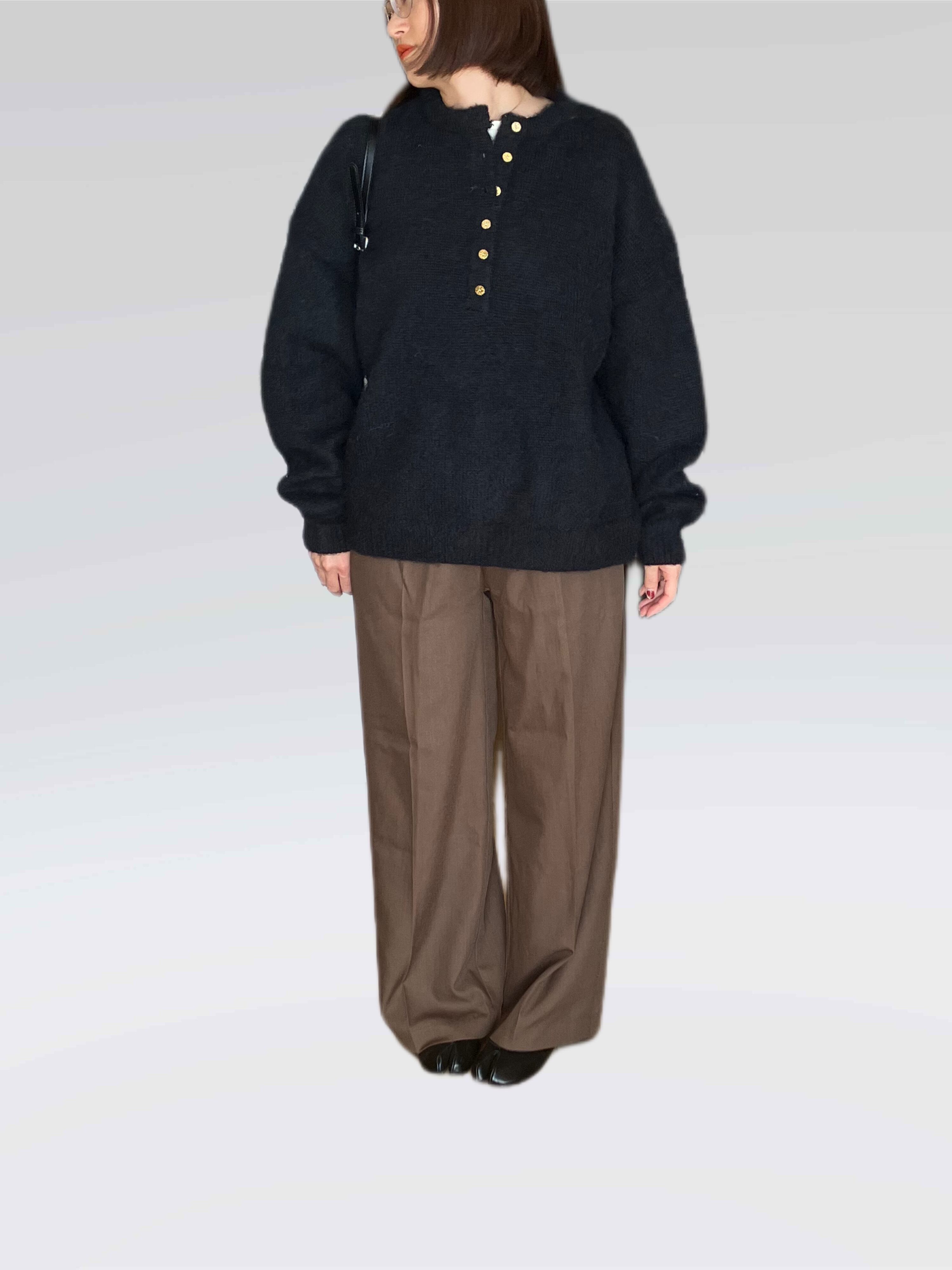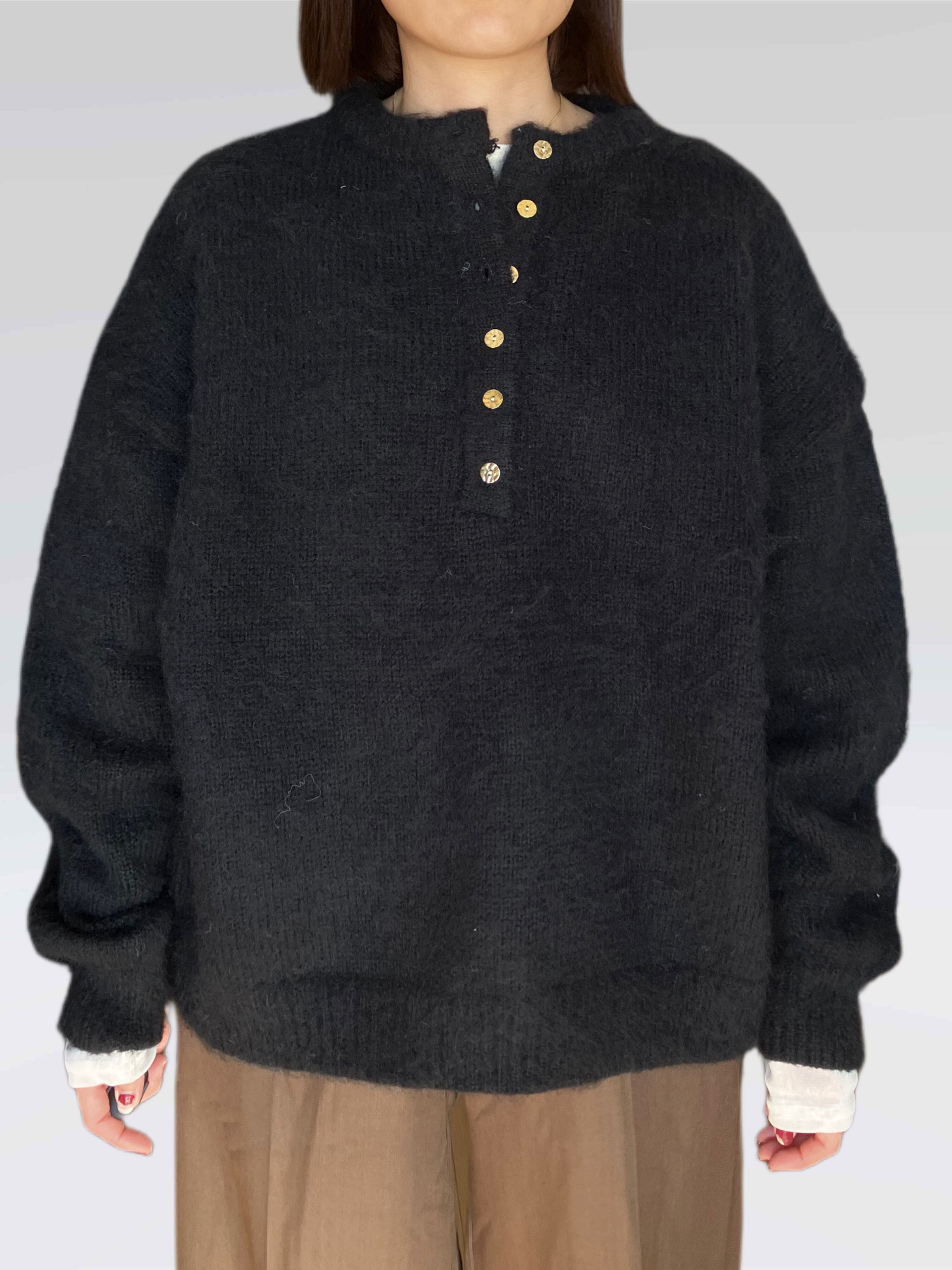 【即納】Wool-Touch Knit Henley Neck Pullover