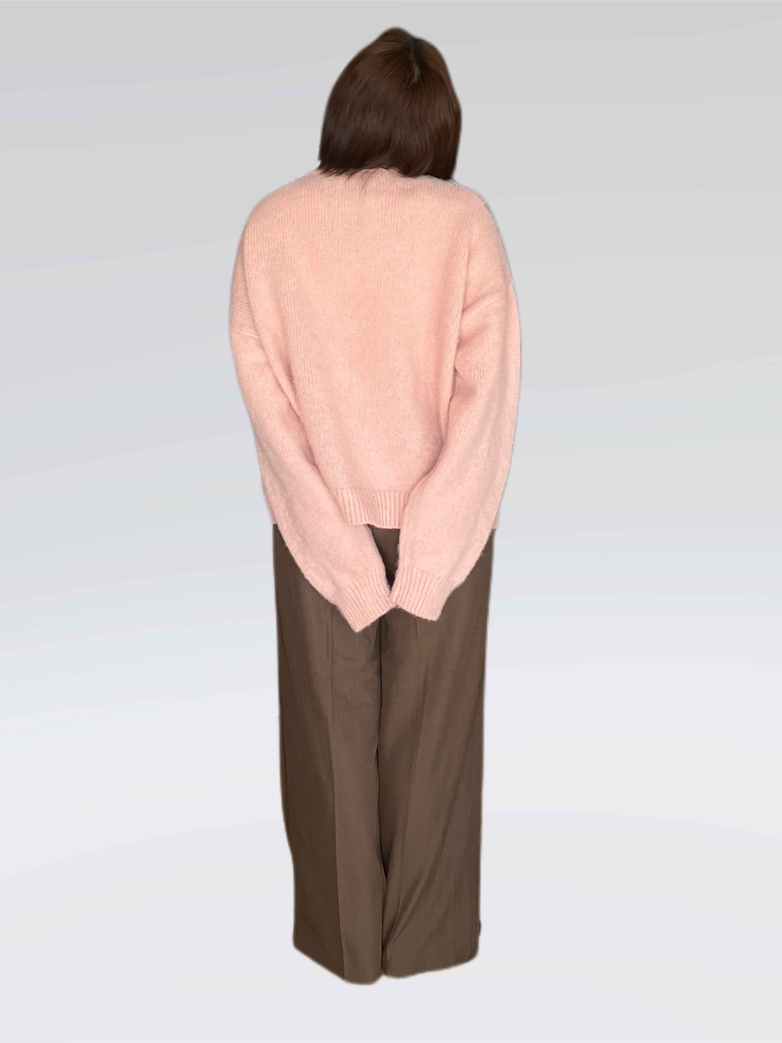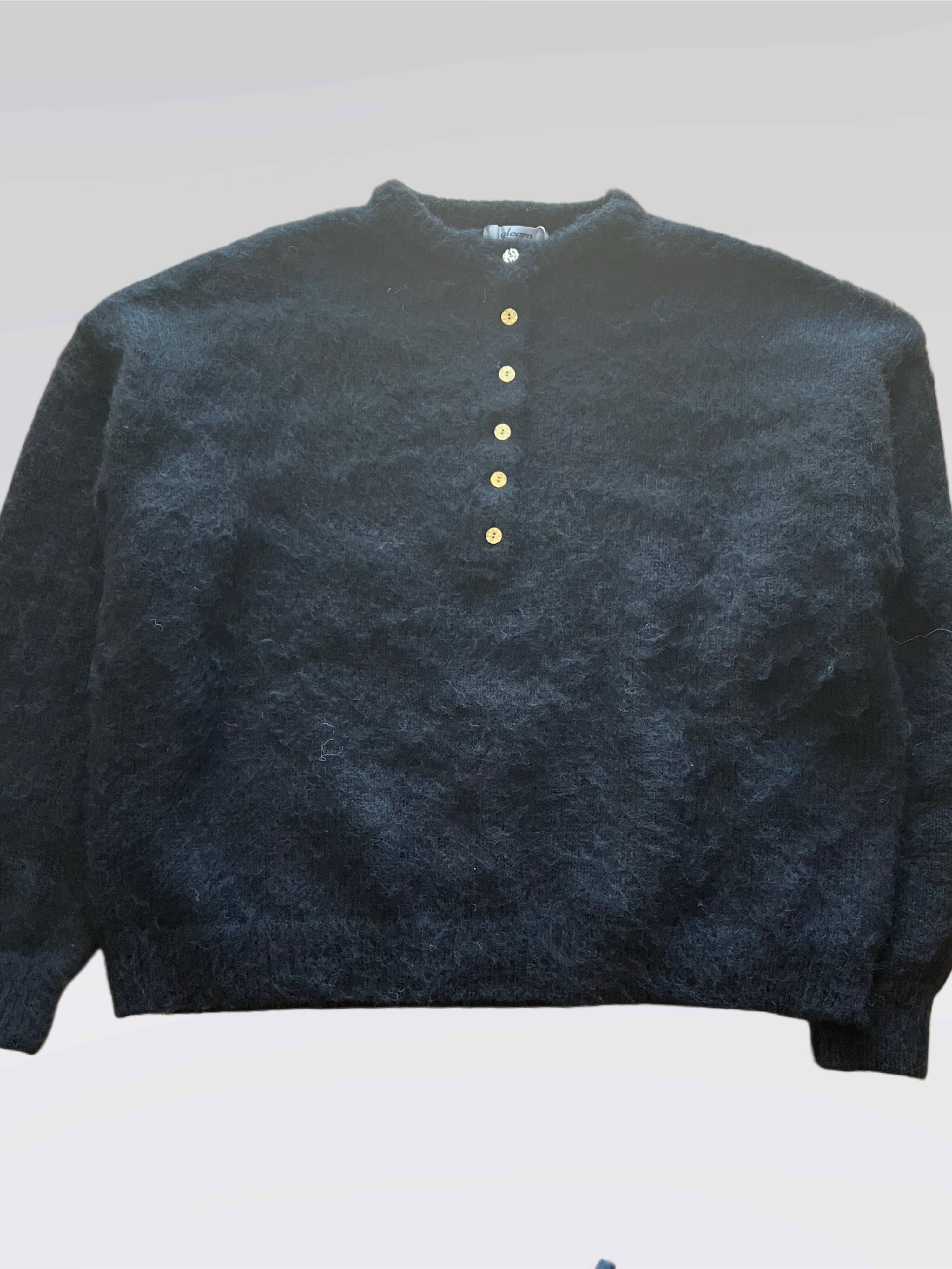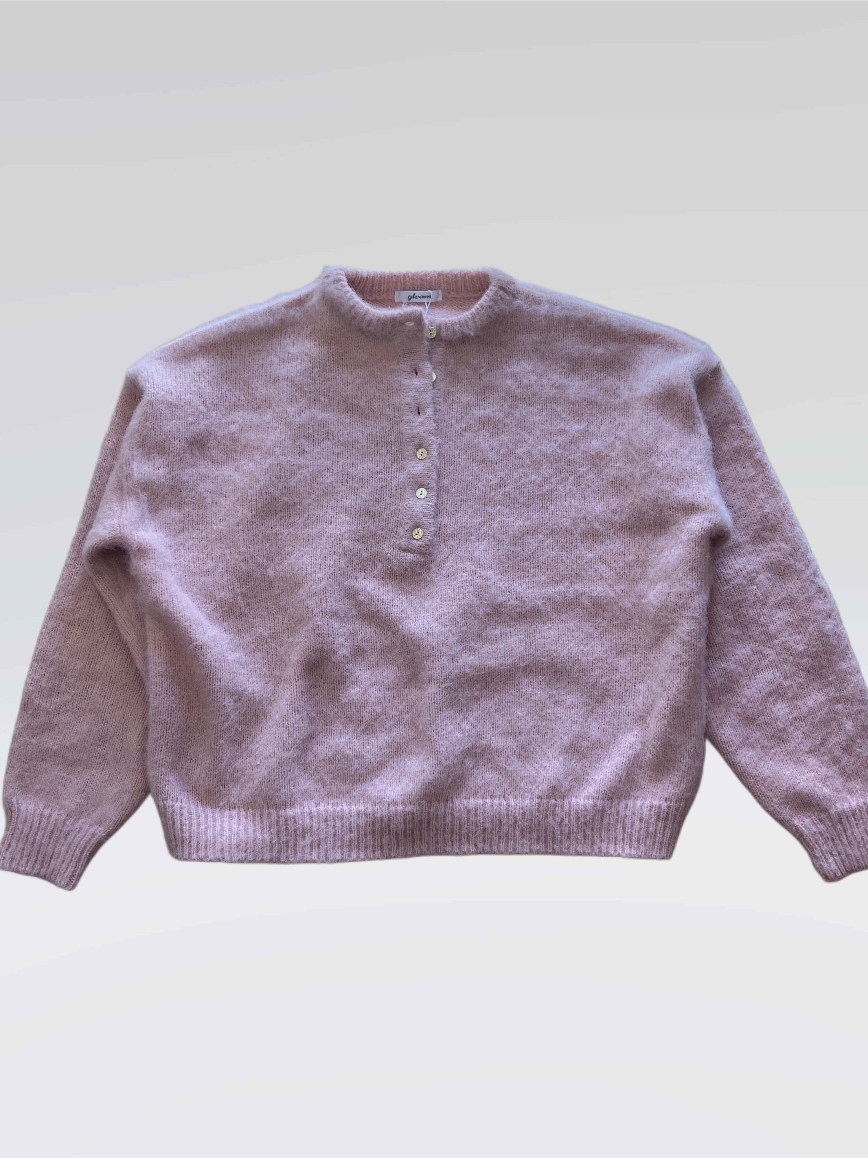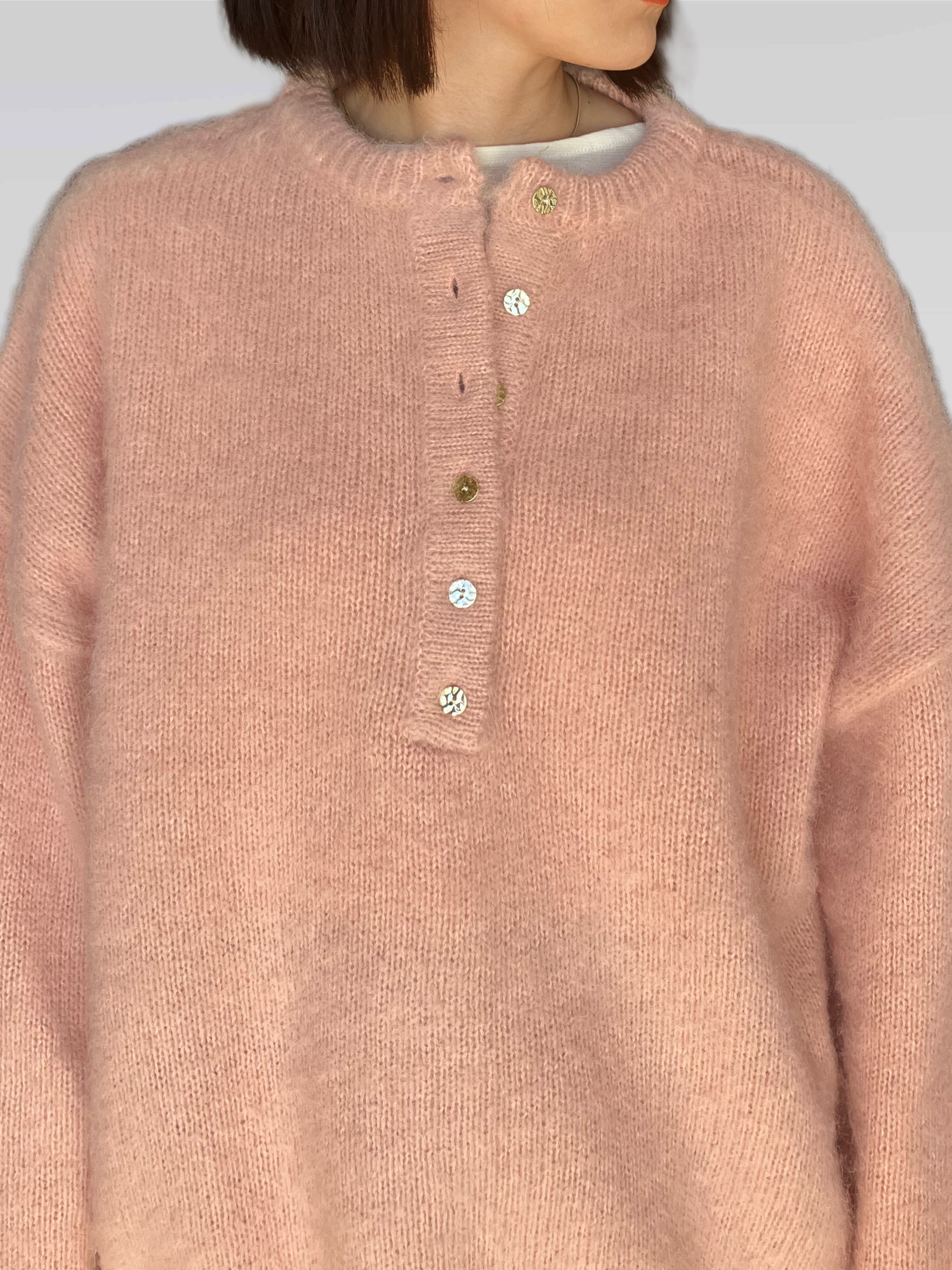 【即納】Wool-Touch Knit Henley Neck Pullover